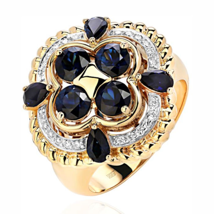 Кольцо из желтого золота 585 пробы с сапфирами и бриллиантами 01К6313309-5