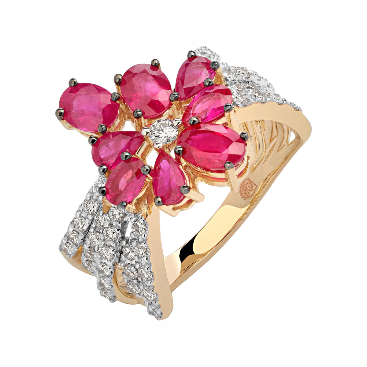 Кольцо из желтого золота 585 пробы с рубинами и бриллиантами 01К6313350-1