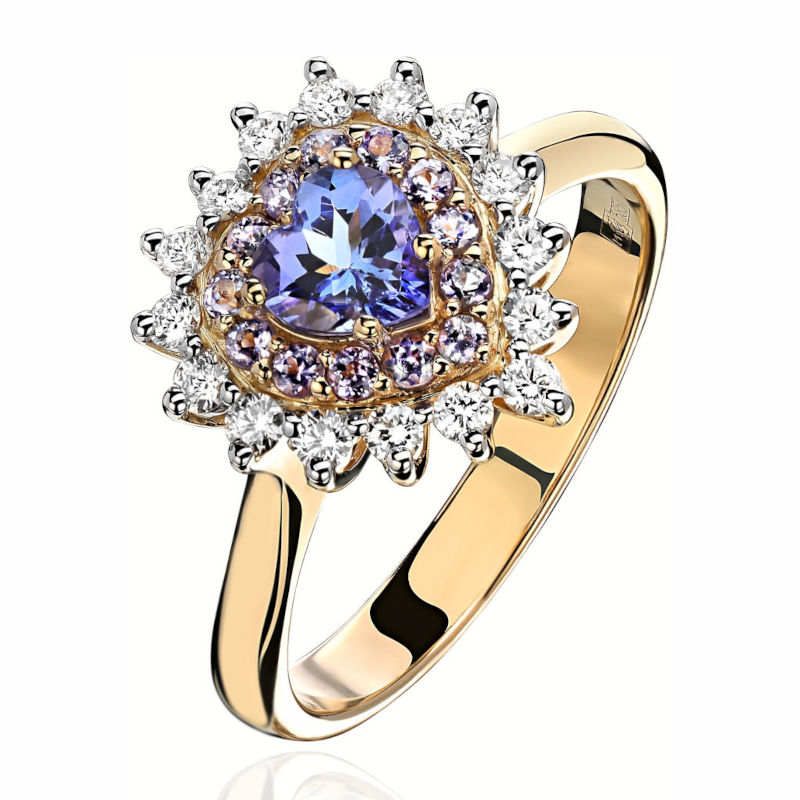 Кольцо из желтого золота 585 пробы с танзанитами и бриллиантами 01К6313610-1