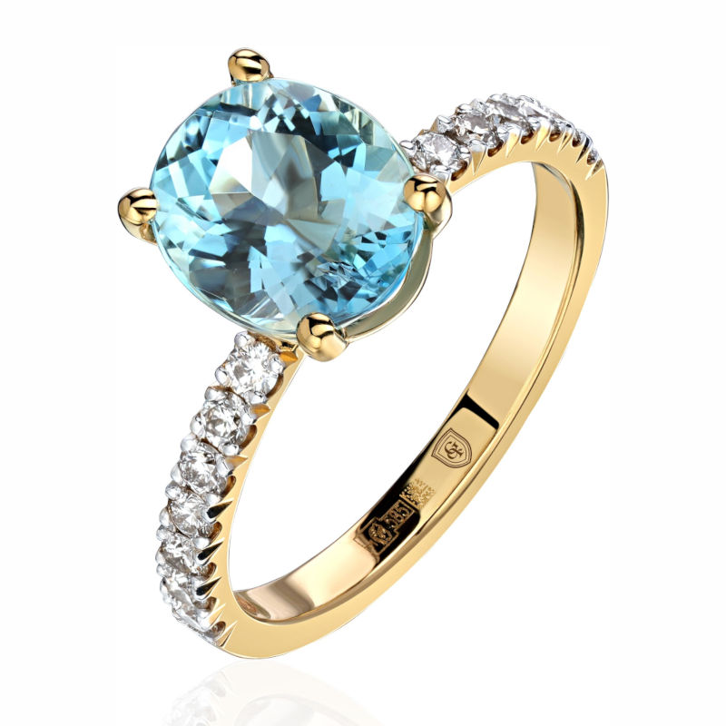 Кольцо из желтого золота 585 пробы с аквамарином и бриллиантами 01К6315949-1