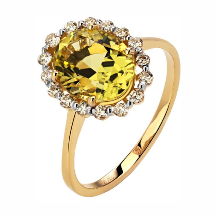 Кольцо из желтого золота 585 пробы с кварцем и бриллиантами 01К635922-4