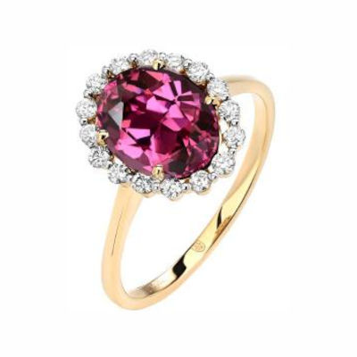 Кольцо из желтого золота 585 пробы с родолитом и бриллиантами 01К6351032-9