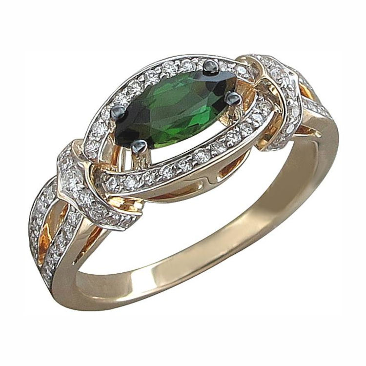 Кольцо из желтого золота 585 пробы с турмалином и бриллиантами 01К637988-6