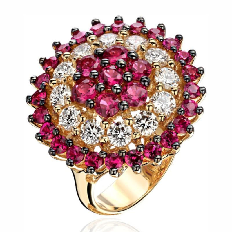 Кольцо из желтого золота 750 пробы с рубинами и бриллиантами 01К6415082-2