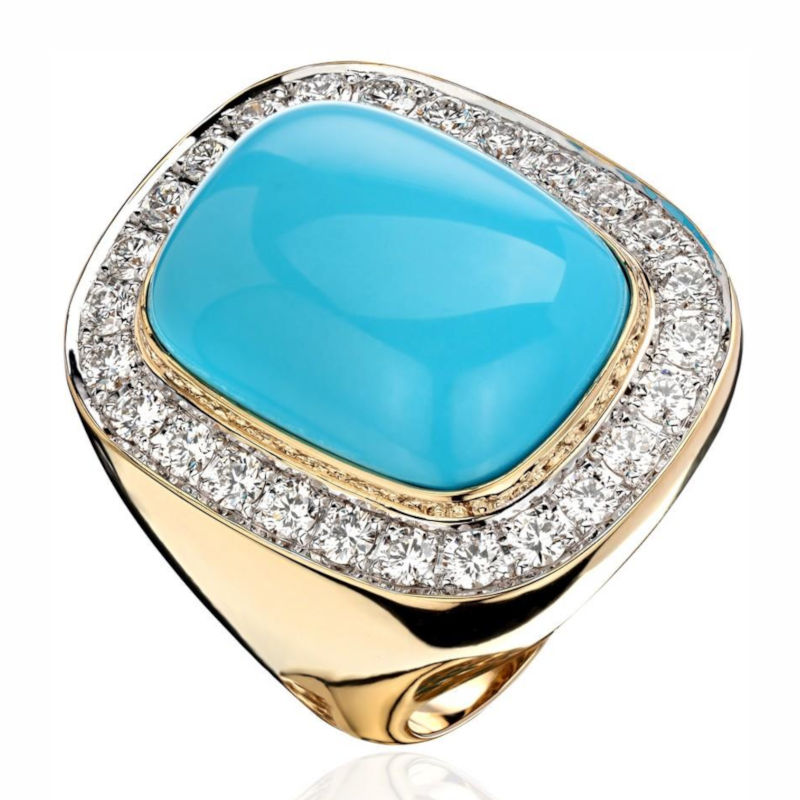 Кольцо из желтого золота 750 пробы с бирюзой и бриллиантами 01К6413991-1