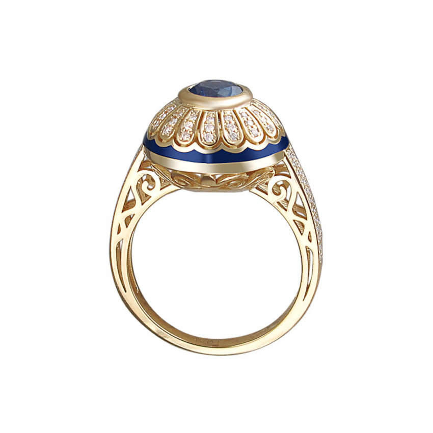 Кольцо из желтого золота 750 пробы с танзанитом, бриллиантами и эмалью 01К646563Э-2