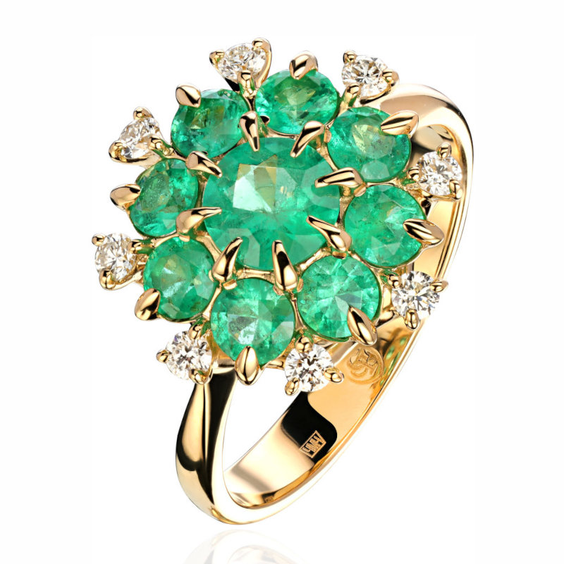 Кольцо из желтого золота 750 пробы с изумрудами и бриллиантами 01К647803-4