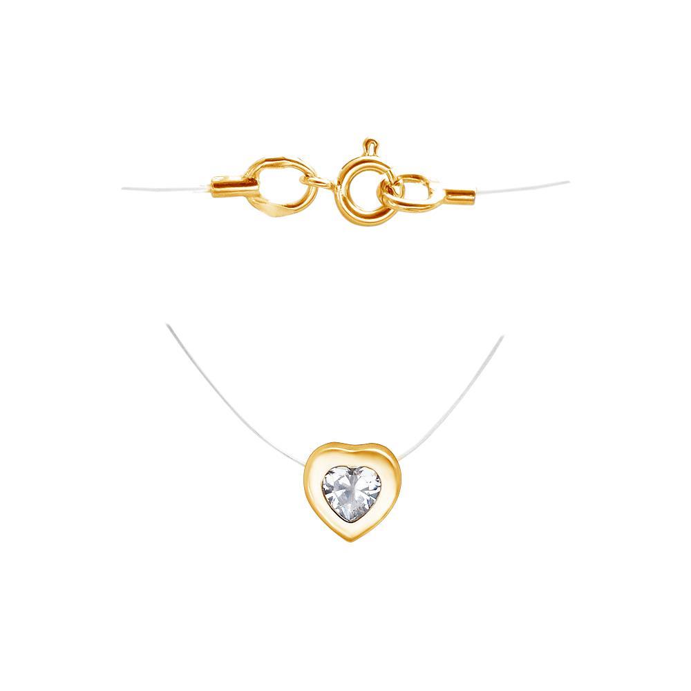 Колье из желтого золота 585 пробы с фианитом 01Л131611 на леске-невидимке. Визуальное впечатление отсутствия цепочки придает особую легкость и нежность Вашему образу. Невесомая, будто парящая в воздухе подвеска смотрится оригинально и очень изящно. В украшении много воздуха, свободы. Аксессуар подчеркнет одну из самых притягательных частей - женскую ключицу и плечи.