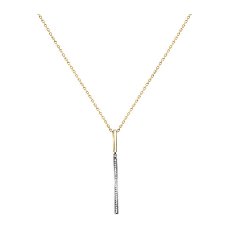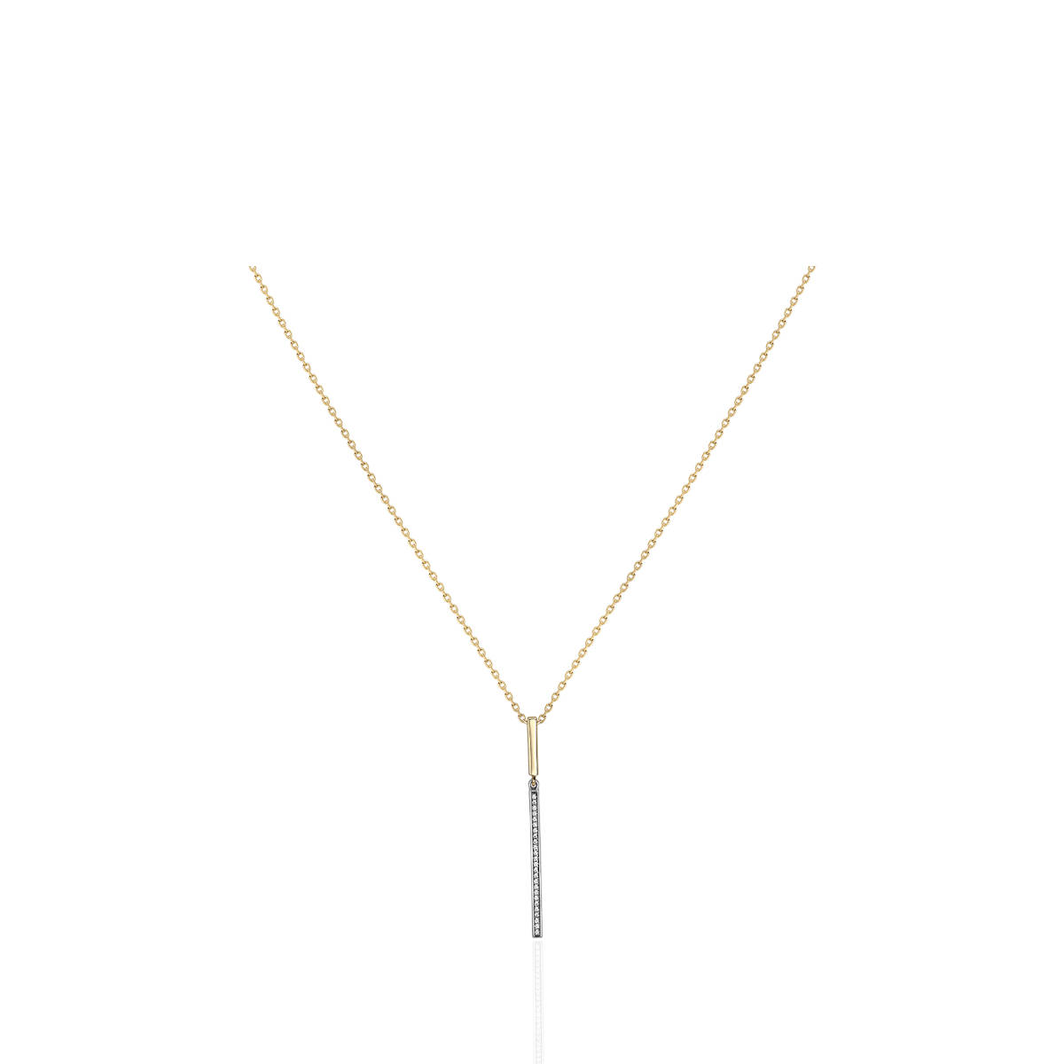Колье из двух цветов золота 585 пробы с фианитами. Колье завершит Ваш образ вне зависимости от предпочитаемого стиля. Выберите дизайн, который максимально подчеркнет Вашу индивидуальность. Тончайшая цепочка и подвеска с 25 фианитами прекрасно дополнит любой образ. Идеальное сочетание желтого и белого цветов.