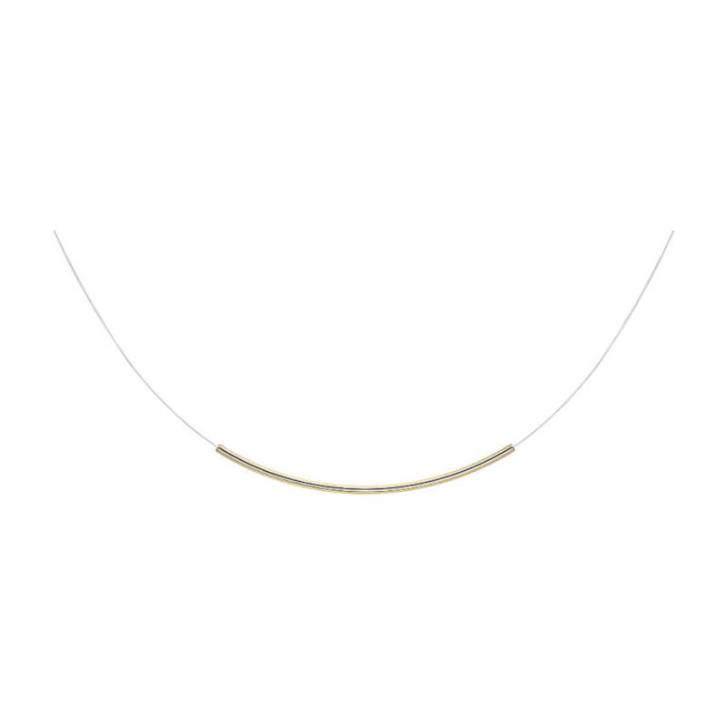 Колье из желтого золота 585 пробы без вставок 01Л031673 на леске-невидимке. Визуальное впечатление отсутствия цепочки придает особую легкость и нежность Вашему образу. Невесомая, будто парящая в воздухе подвеска смотрится оригинально и очень изящно. В украшении много воздуха, свободы. Аксессуар подчеркнет одну из самых притягательных частей - женскую ключицу и плечи.
