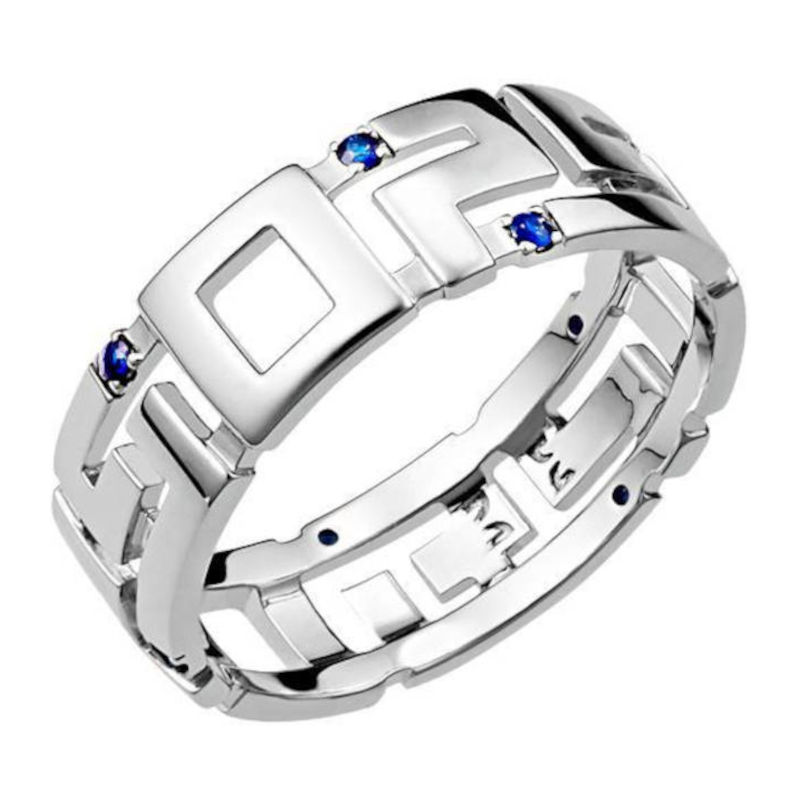Кольцо из белого золота 585 пробы с сапфирами из коллекции АРИАДНА. Дизайнеры вдохновились поступком мифологической героини Ариадны. Она помогла своему возлюбленному выйти из лабиринта и победить Минотавра. На первое место ставится подвиг и роль женщины. В жизни каждого мужчины должна быть такая женщина, которая укажет правильный путь, выведет из темноты. Именно поэтому подарок в виде украшения из коллекции АРИАДНА - это ювелирное признание. А в качестве визуального воплощения мифа выбран лабиринт - древний и мощный символ. Идеальный баланс золота и сапфиров. Цвет сапфиров традиционный синий, но отличается необычайной чистотой синевы. Не смотря на идею вдохновения, несравненным преимуществом кольца будет в том, что дизайн выполнен в стиле "унисекс". Украшение подчеркнет статус и характер смелого и неординарного мужчины.
