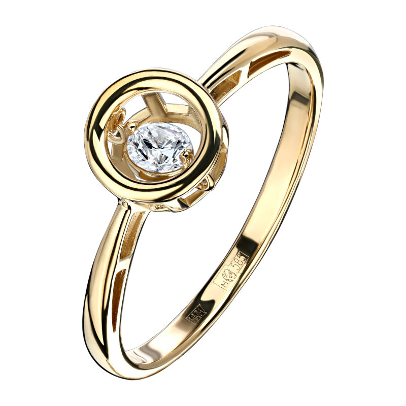 Кольцо из желтого золота 585 пробы с танцующим фианитом из коллекции Impulse Gold. Уникальная закрепка раскрывает всю красоту украшений. Точно выверенный баланс создан с таким расчетом, чтобы изделие следовало за любыми движениями Вашего тела. Покачиваясь, камень превращает световые лучи в завораживающие радужные вспышки огня. Это истинное волшебство, которого достойна настоящая Женщина!