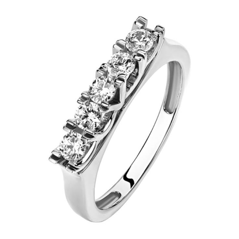Кольцо из белого золота 585 пробы с дорожкой камней. Этот дизайн уже успел стать классикой ювелирного искусства. Сияние камней и простые геометрические формы делают его идеальным вариантом украшения на каждый день. Кольцо отлично дополнит любой стиль и образ. Покупая кольцо у нас, вы получаете не просто украшение, а настоящее произведение искусства, которое подчеркнет индивидуальность и стиль своей владелицы. Каждое кольцо тщательно разрабатывается нашими специалистами, что гарантирует высокое качество и долговечность.