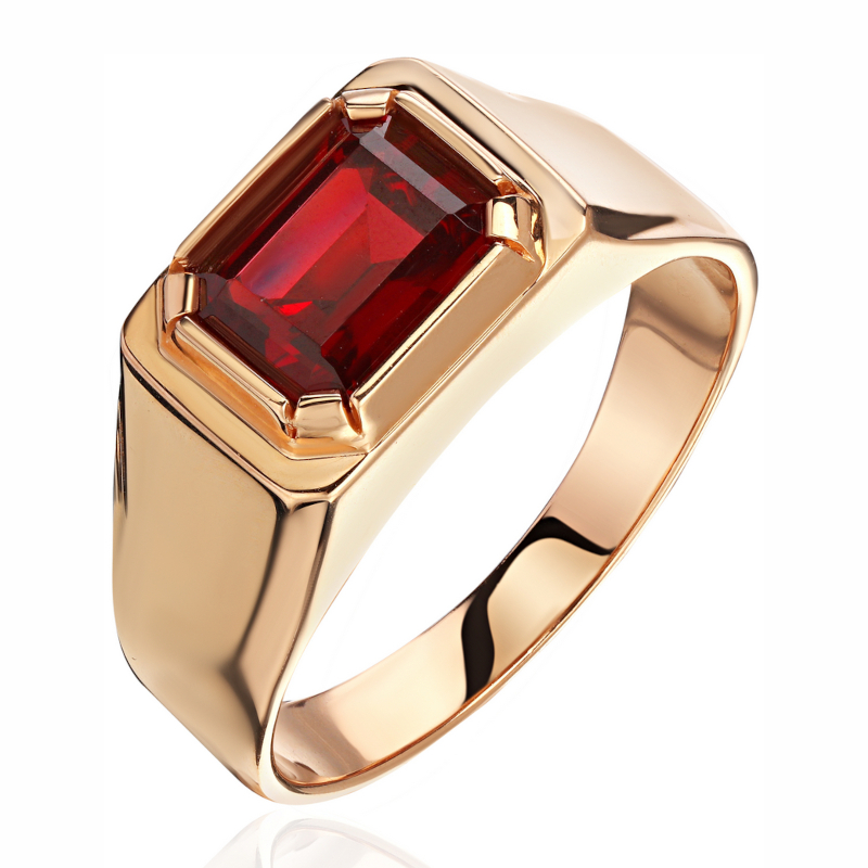 Перстень из красного золота 585 пробы с наноситал гранатом 01Т214777-3