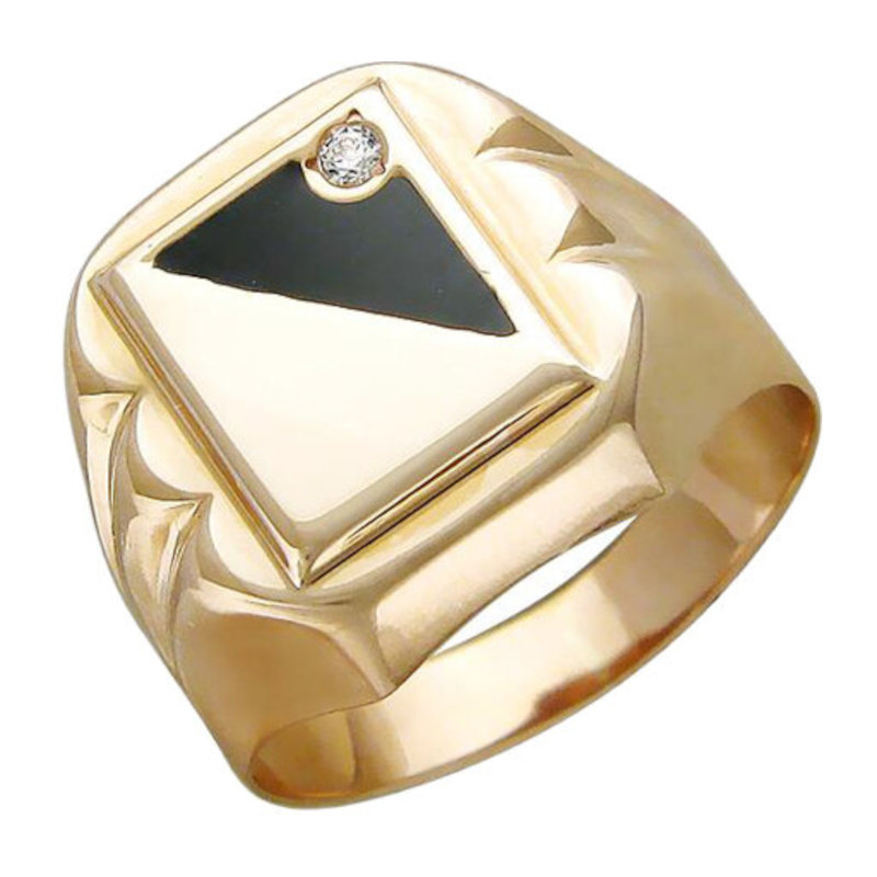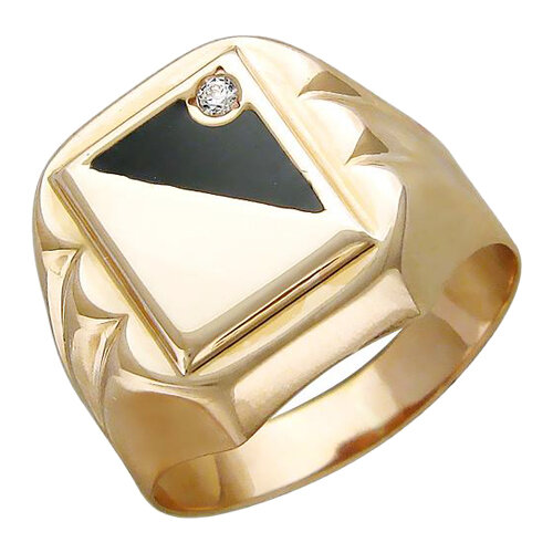 Перстень из красного золота 585 пробы с фианитом и эмалью 01Т116394Э