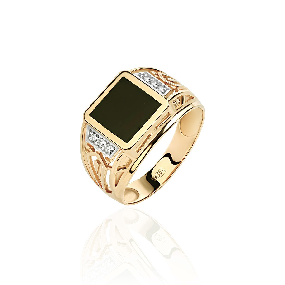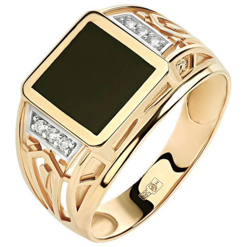 Перстень из желтого золота 585 пробы с агатом и фианитами 01Т4312812-1