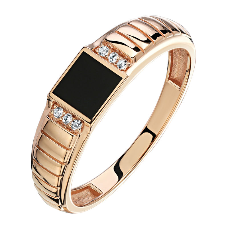 Кольцо из красного золота 585 пробы с фианитом и агатом 01Т4115222-1