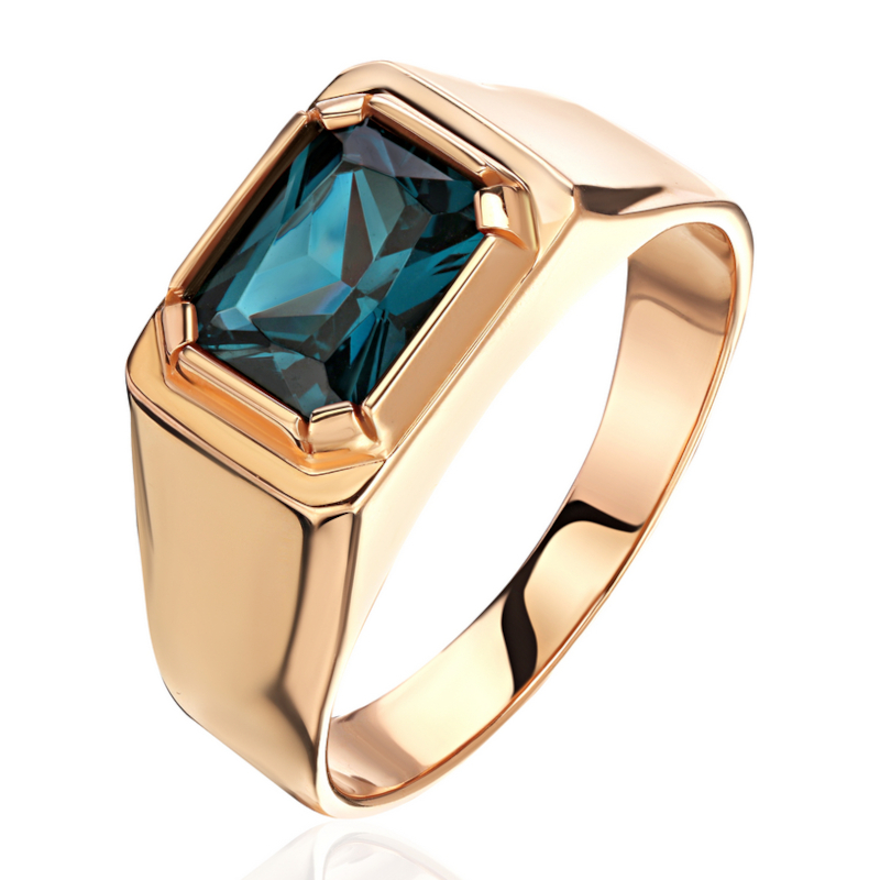 Кольцо из красного золота 585 пробы с наносинтал топазом - элегантное и стильное украшение для мужчин, которое подчеркнет ваш статус и вкус.