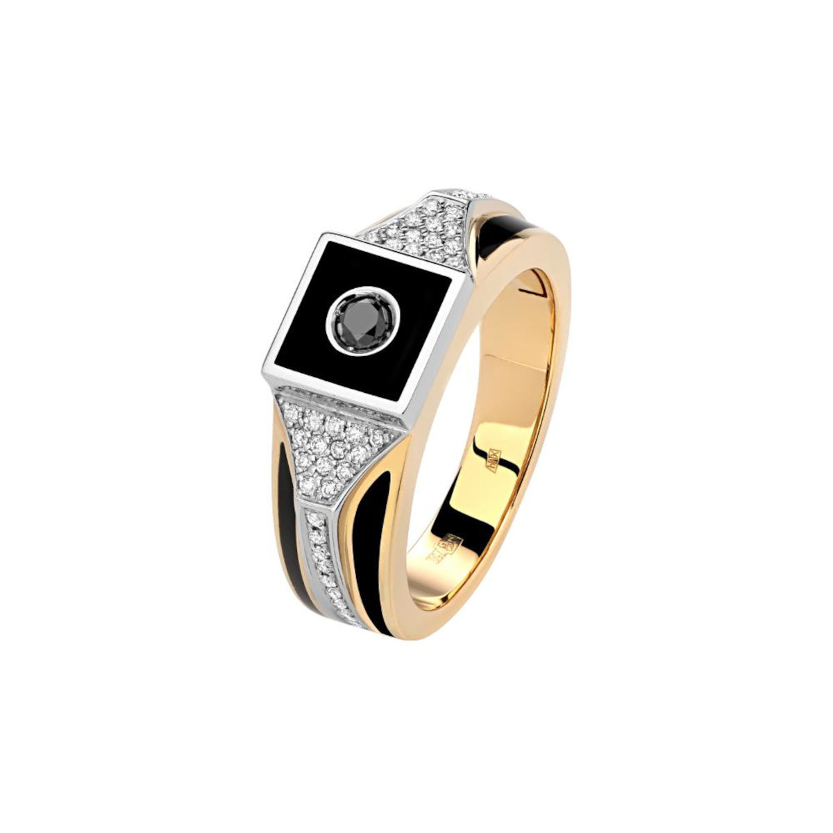 Кольцо из комбинированного золота 750 пробы с бриллиантами и эмалью 01Т686025ЭL