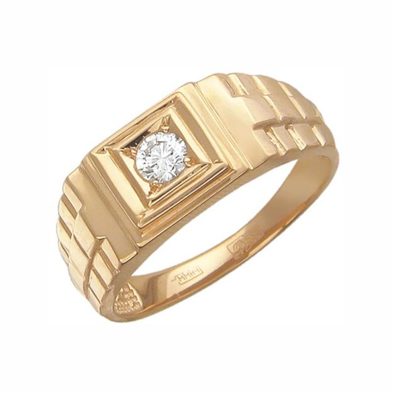 Печатка из красного золота 585 пробы с бриллиантом 01Т610788