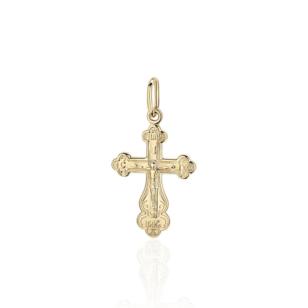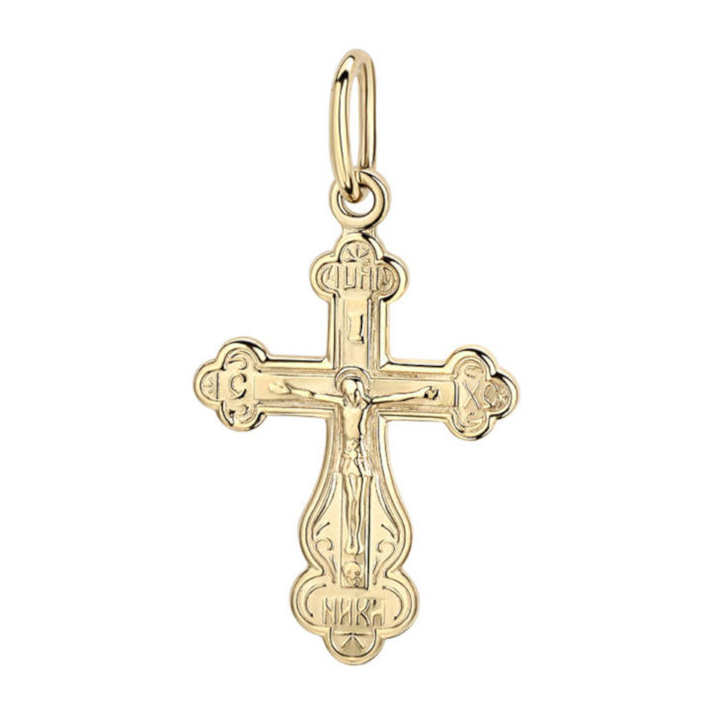 Крест нательный из желтого золота 585 пробы без вставок. Подвеска крест – особенное ювелирное изделие. Этот важный христианский символ, выполненный из драгоценного металла, может стать замечательным подарком для верующего человека. Он несет на себе множество богословских символов и священных образов. Нательные крестики принято носить под одеждой.