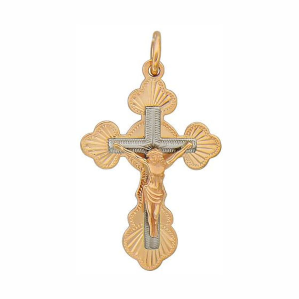 Крест нательный из двух цветов золота 585 пробы без вставок 01Р760531