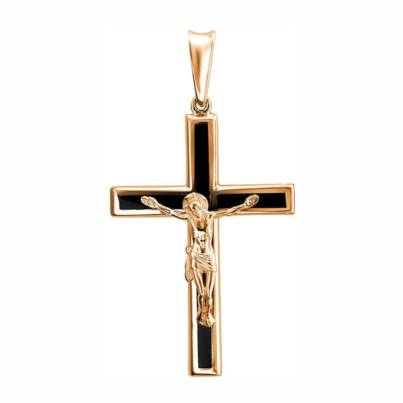 Крест нательный из красного золота 585 пробы с агатом 01Р410982-1