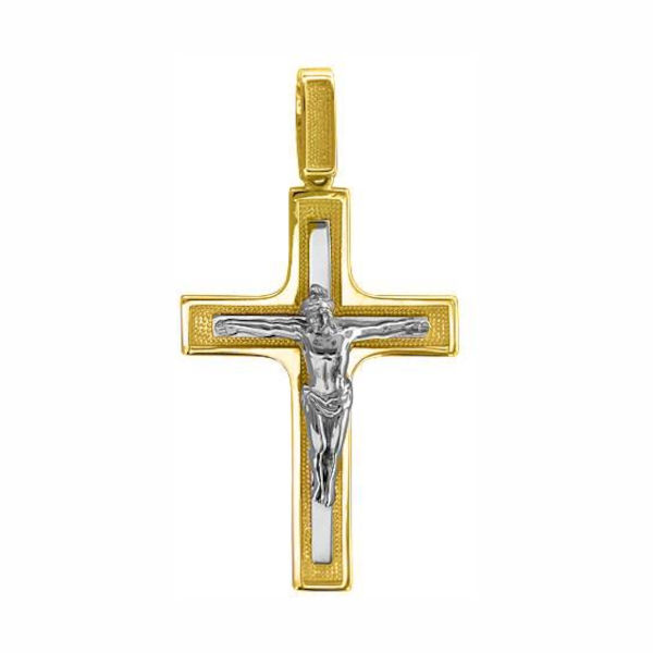 Крест нательный из двух цветов золота 585 пробы без вставок 01Р060629Ж