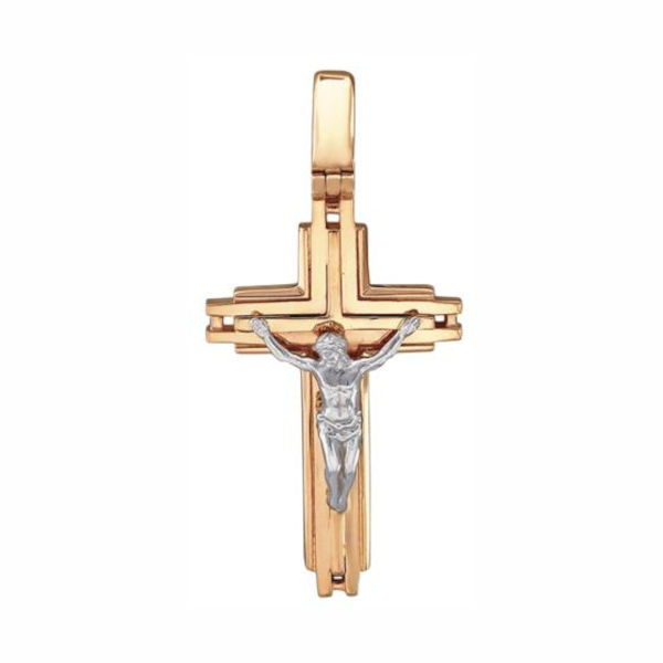 Крест нательный из двух цветов золота 585 пробы без вставок 01Р060752