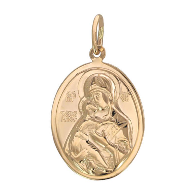 Подвеска из красного золота 585 пробы с религиозной тематикой несет глубокий смысл. Она символизируют принадлежность человека к определенной вере, поэтому обладают особой ценностью для своего владельца. На подвеске изображен образ Владимирской Божией Матери.