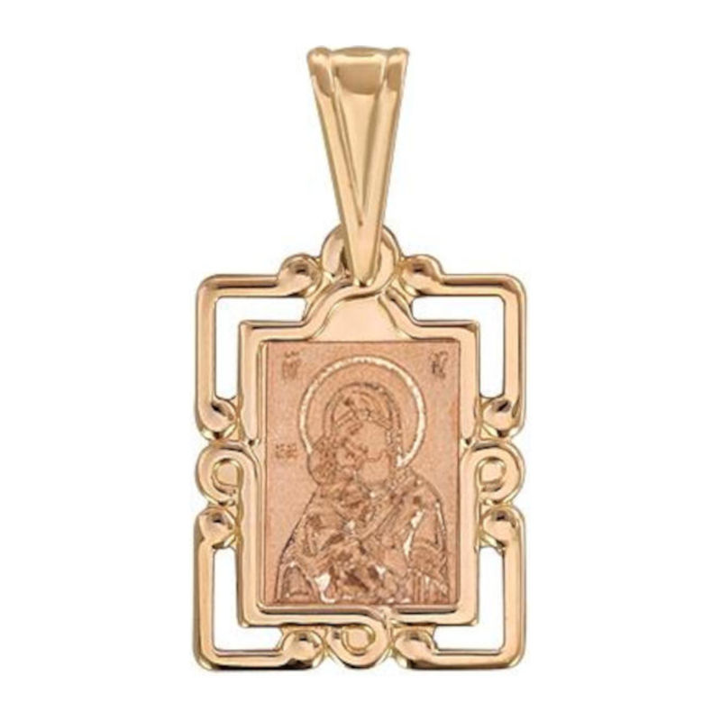 Подвеска из красного золота 585 пробы с религиозной тематикой несет глубокий смысл. Она символизируют принадлежность человека к определенной вере, поэтому обладают особой ценностью для своего владельца. На подвеске изображен образ Владимирской Божией Матери. Размеры В х Ш: 17.00 x 14.00 мм.