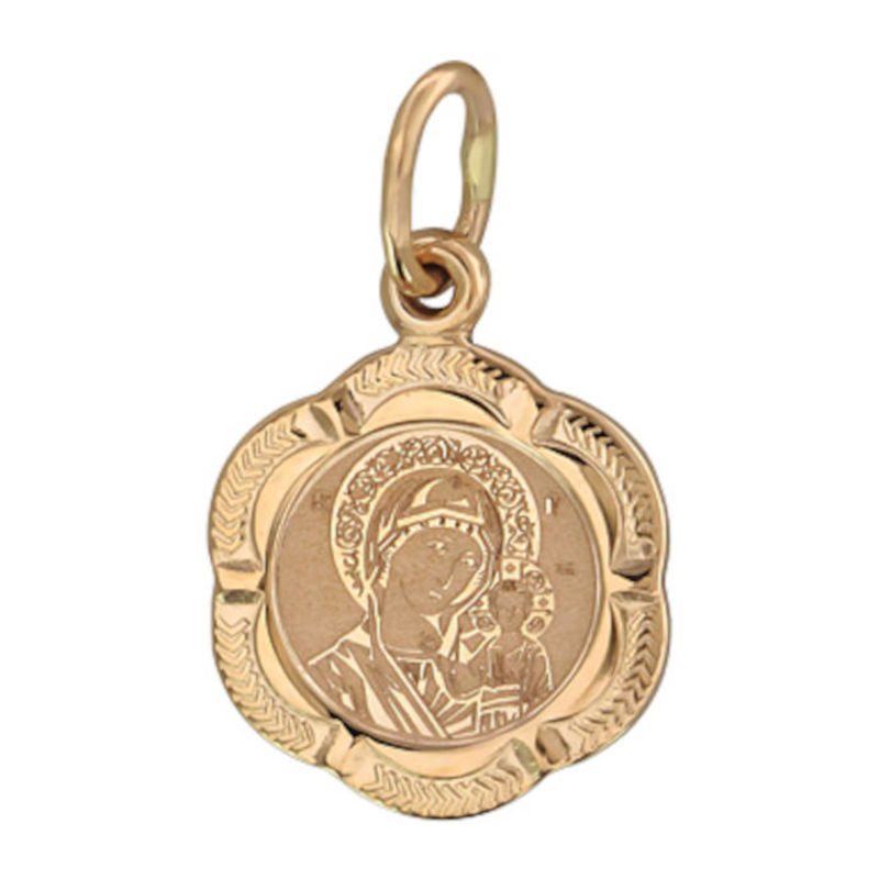 Подвеска кулон Казанская Божья Матерь из красного золота 585 пробы без вставок 01П011350