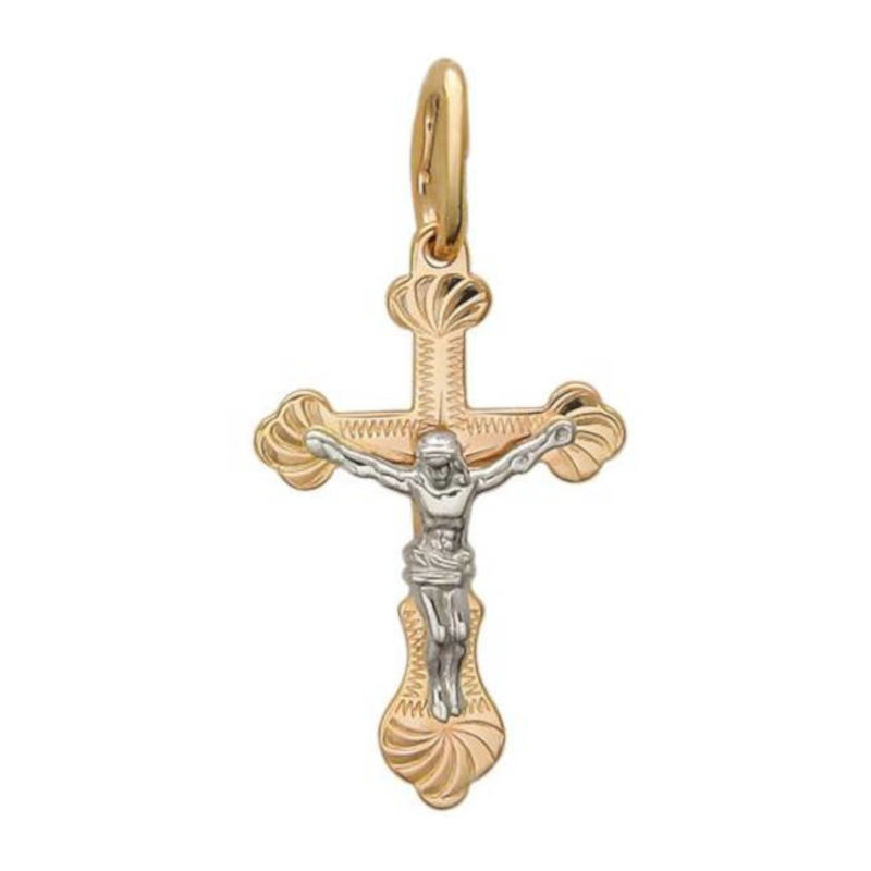Крест нательный из двух цветов золота 585 пробы без вставок 01Р760701