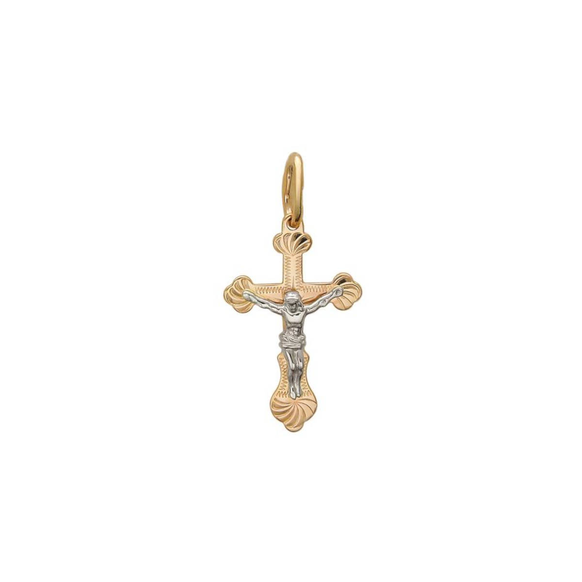 Крест нательный из двух цветов золота 585 пробы без вставок 01Р760591
