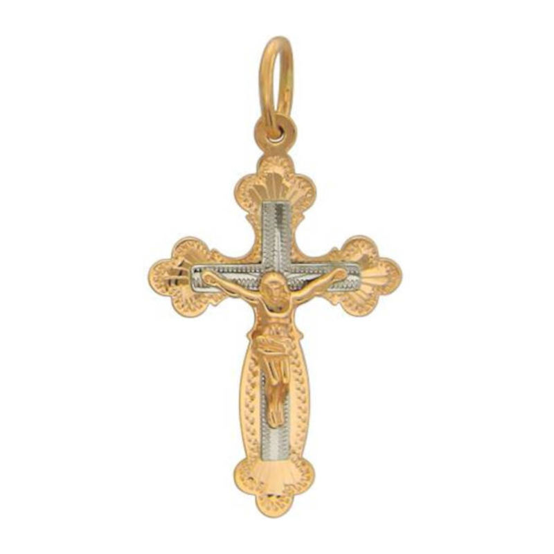 Крест нательный из двух цветов золота 585 пробы без вставок 01Р760598
