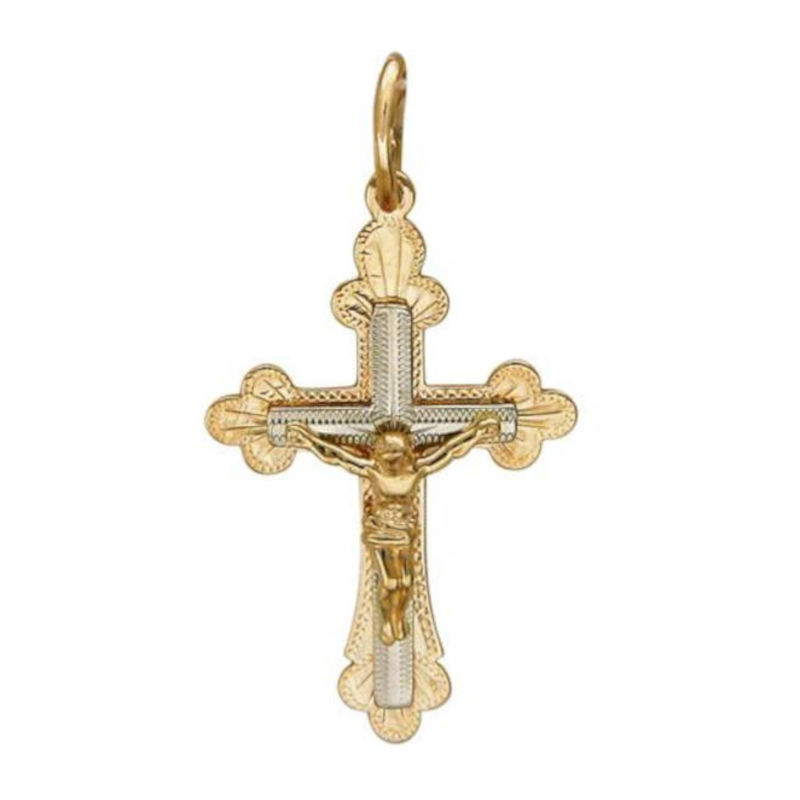 Крест нательный из двух цветов золота 585 пробы без вставок 01Р760614