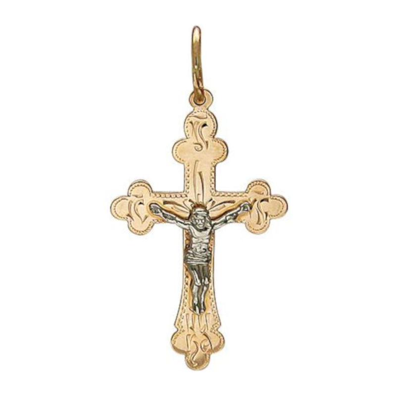 Крест нательный из двух цветов золота 585 пробы без вставок 01Р760695