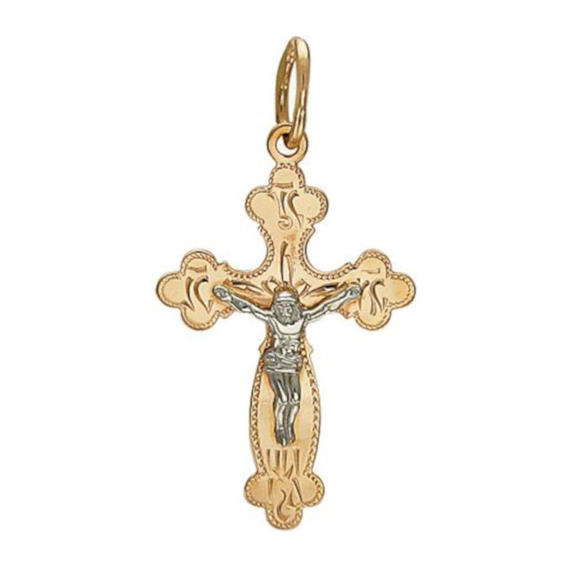 Крест нательный из двух цветов золота 585 пробы без вставок 01Р760696