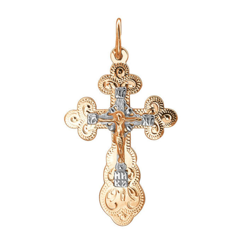Крест нательный из двух цветов золота 585 пробы без вставок 01Р761107