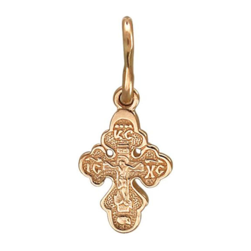 Подвеска "Крест" из красного золота 585 пробы 01Р010808 — универсальное украшение, которое подойдет как мужчинам, так и женщинам. Полная высота изделия составляет 2 см, из них 0,7 см занимает кольцо для цепи. Размер самого креста — 1,3х0,9 см.