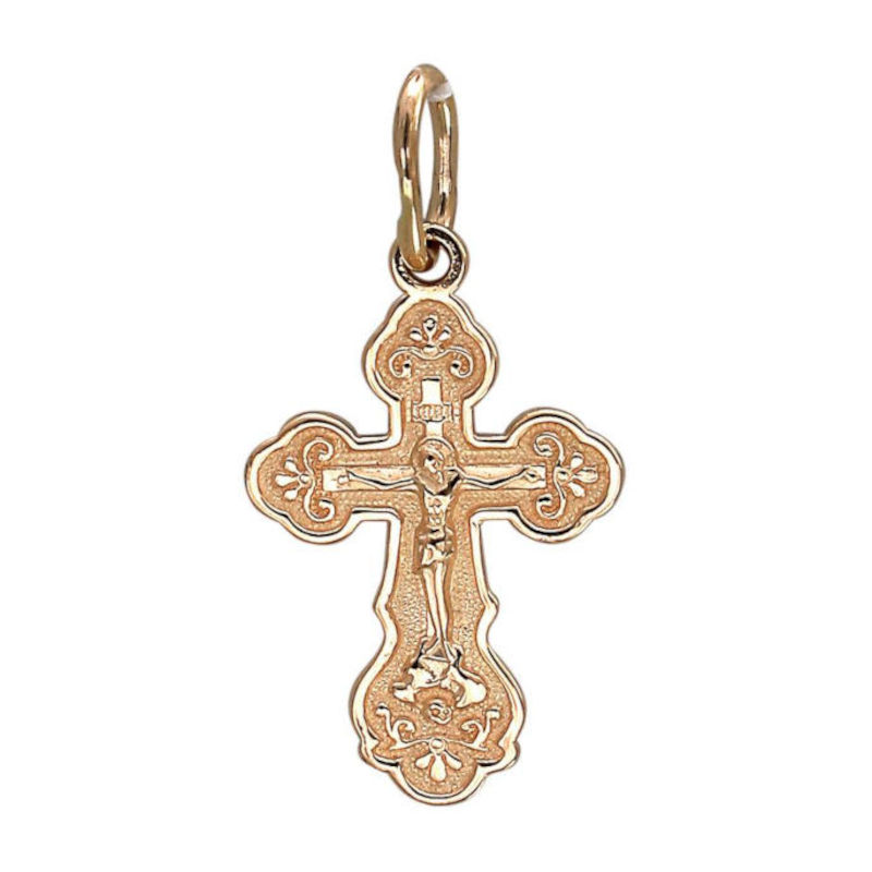 Крест нательный из красного золота 585 пробы без вставок. Подвеска крест – особенное ювелирное изделие. Этот важный христианский символ, выполненный из драгоценного металла, может стать замечательным подарком для верующего человека. Он несет на себе множество богословских символов и священных образов. Нательные крестики принято носить под одеждой.