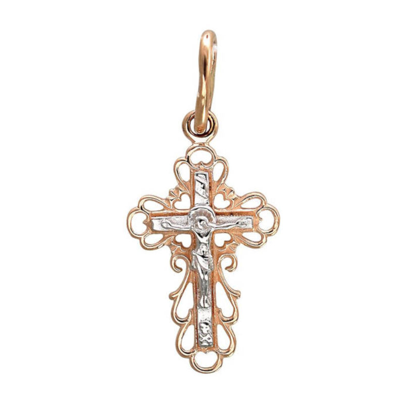 Подвеска "Крест" из красного золота 585 пробы 01Р010846 — универсальное украшение, которое подойдет как мужчинам, так и женщинам. Полная высота изделия составляет 2,1 см, из них 0,6 см занимает кольцо для цепи. Размер самого креста — 1,8х1,2 см.
