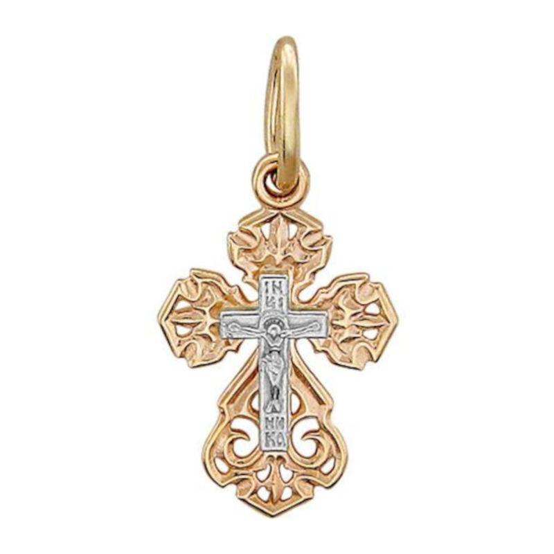Крест нательный из двух цветов золота 585 пробы без вставок 01Р060736