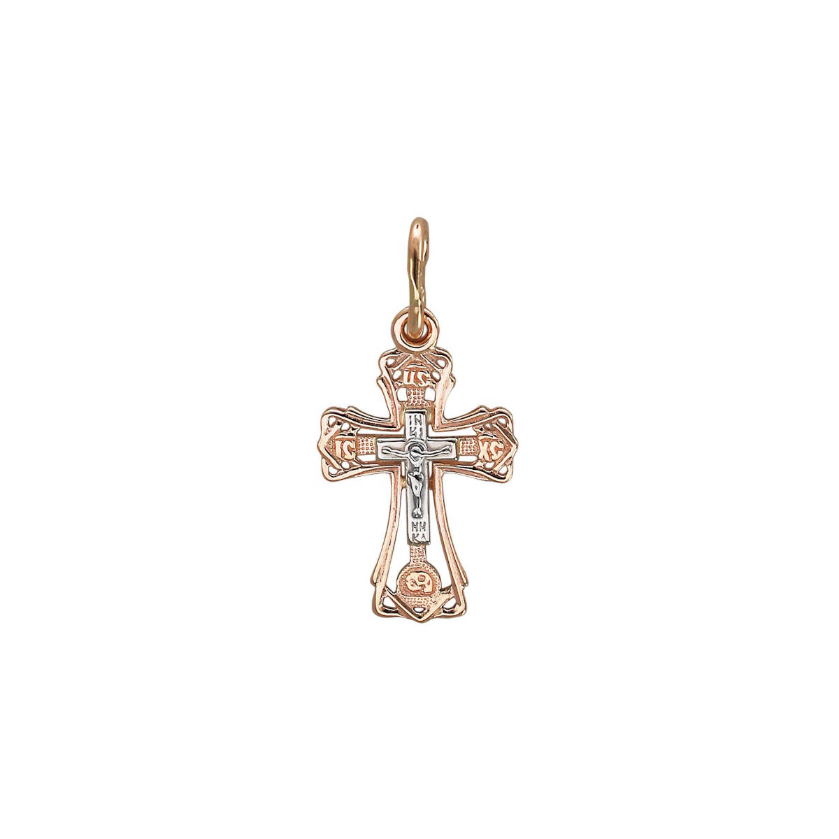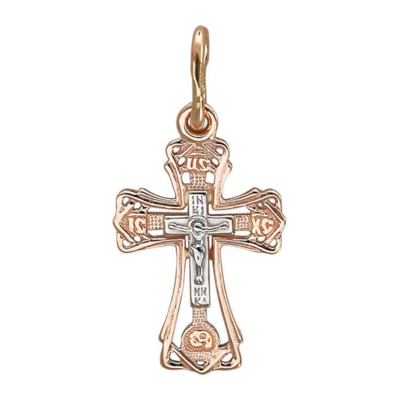 Крест нательный из двух цветов золота 585 пробы без вставок 01Р060922