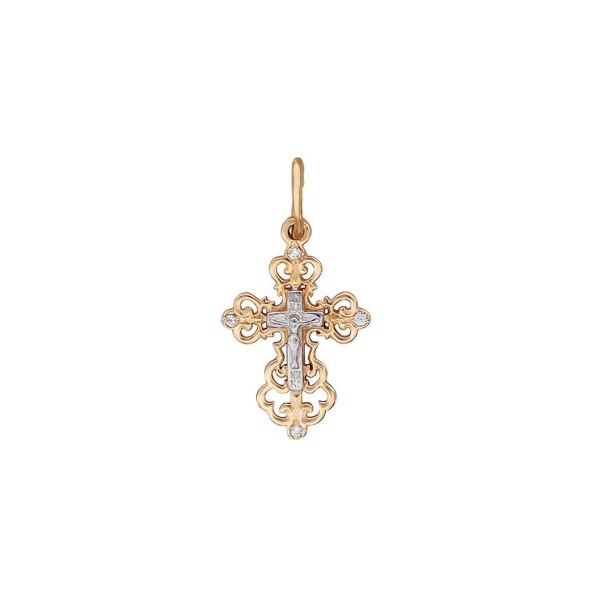 Крест нательный из красного золота 585 пробы с фианитами 01Р110768