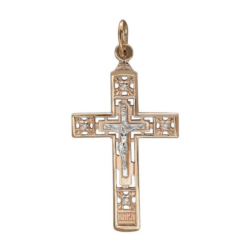 Крест нательный из красного золота 585 пробы с фианитами. Подвеска крест – особенное ювелирное изделие. Этот важный христианский символ, выполненный из драгоценного металла, может стать замечательным подарком для верующего человека. Он несет на себе множество богословских символов и священных образов. Нательные крестики принято носить под одеждой.