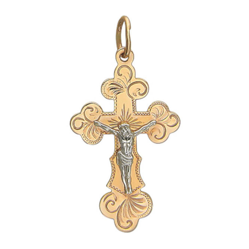 Крест нательный из двух цветов золота 585 пробы без вставок 01Р760527