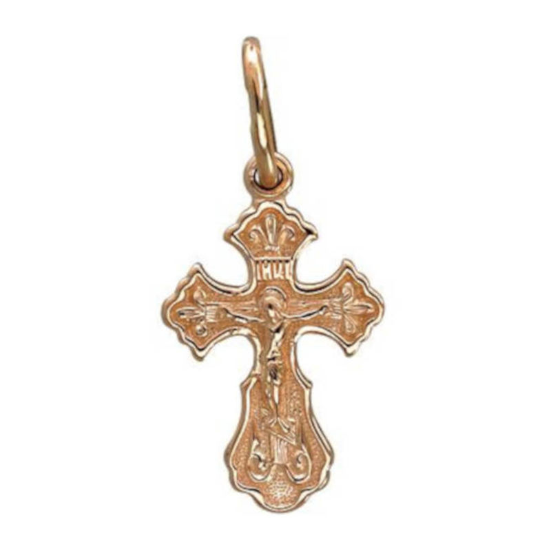 Крест нательный из красного золота 585 пробы без вставок. Подвеска крест – особенное ювелирное изделие. Этот важный христианский символ, выполненный из драгоценного металла, может стать замечательным подарком для верующего человека. Он несет на себе множество богословских символов и священных образов. Нательные крестики принято носить под одеждой.