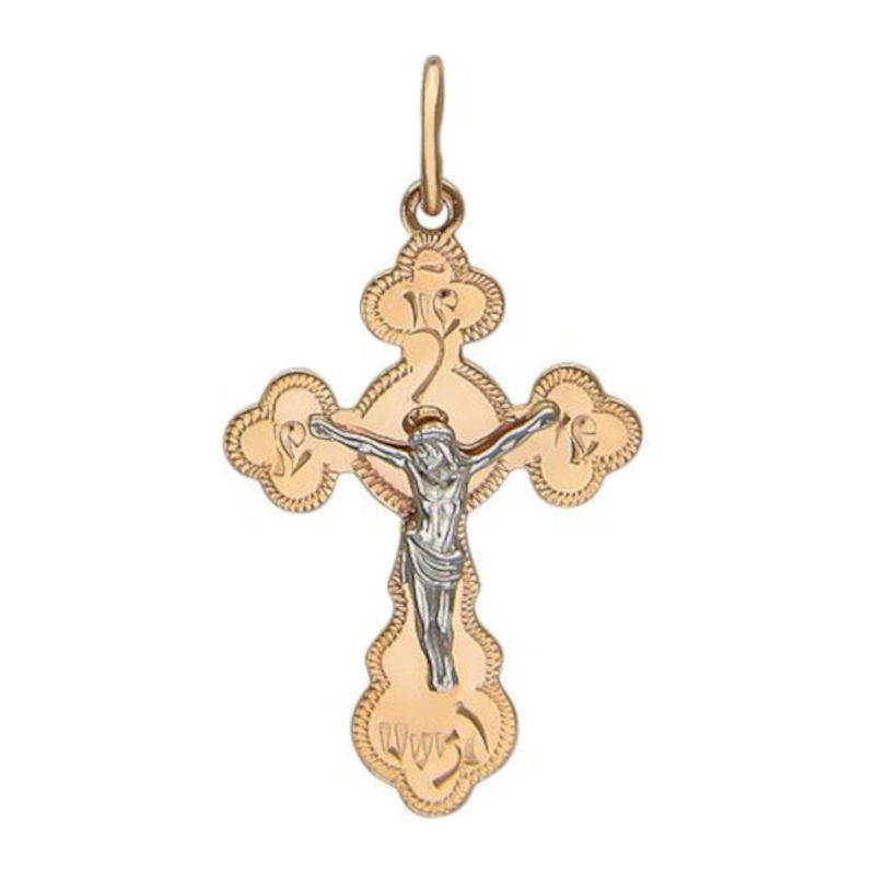 Крест из двух цветов золота 585 пробы без вставок 01Р760632