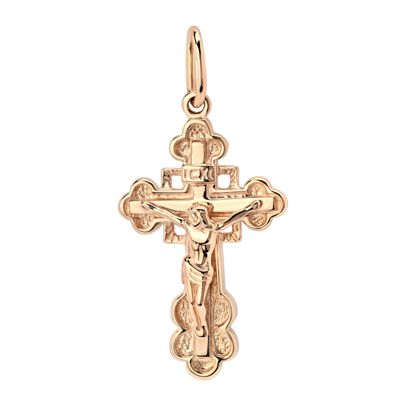 Крест нательный из красного золота 585 пробы без вставок. Подвеска крест – особенное ювелирное изделие. Этот важный христианский символ, выполненный из драгоценного металла, может стать замечательным подарком для верующего человека. Он несет на себе множество богословских символов и священных образов. Нательные крестики принято носить под одеждой. Размеры В х Ш: 27.00 х16.00 мм.